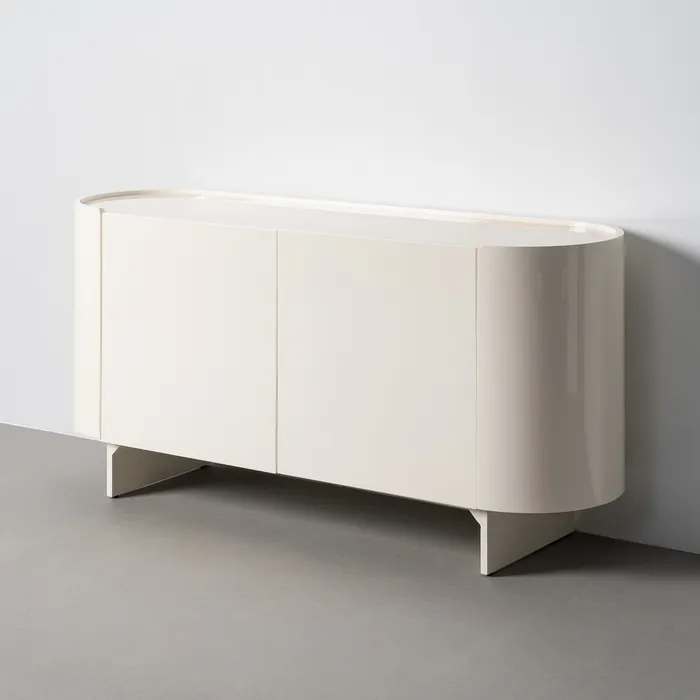 Elevate your living room with this elegant cream lacquered sideboard, featuring a sleek marble top and a sophisticated design that blends modern and classic styles. Its clean lines and neutral tone make it a versatile piece that enhances any interior décor.