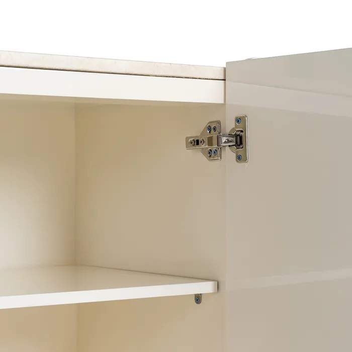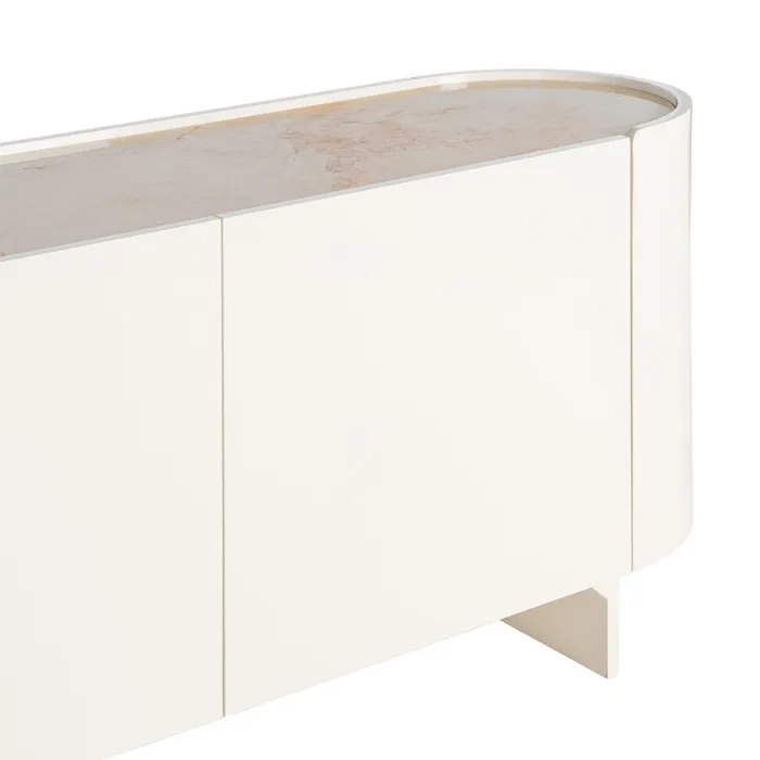Crafted from high-quality lacquered MDF, the sideboard combines durability with refined aesthetics. The natural marble top adds a luxurious touch, though variations in color and veining may occur, highlighting its unique, authentic character.