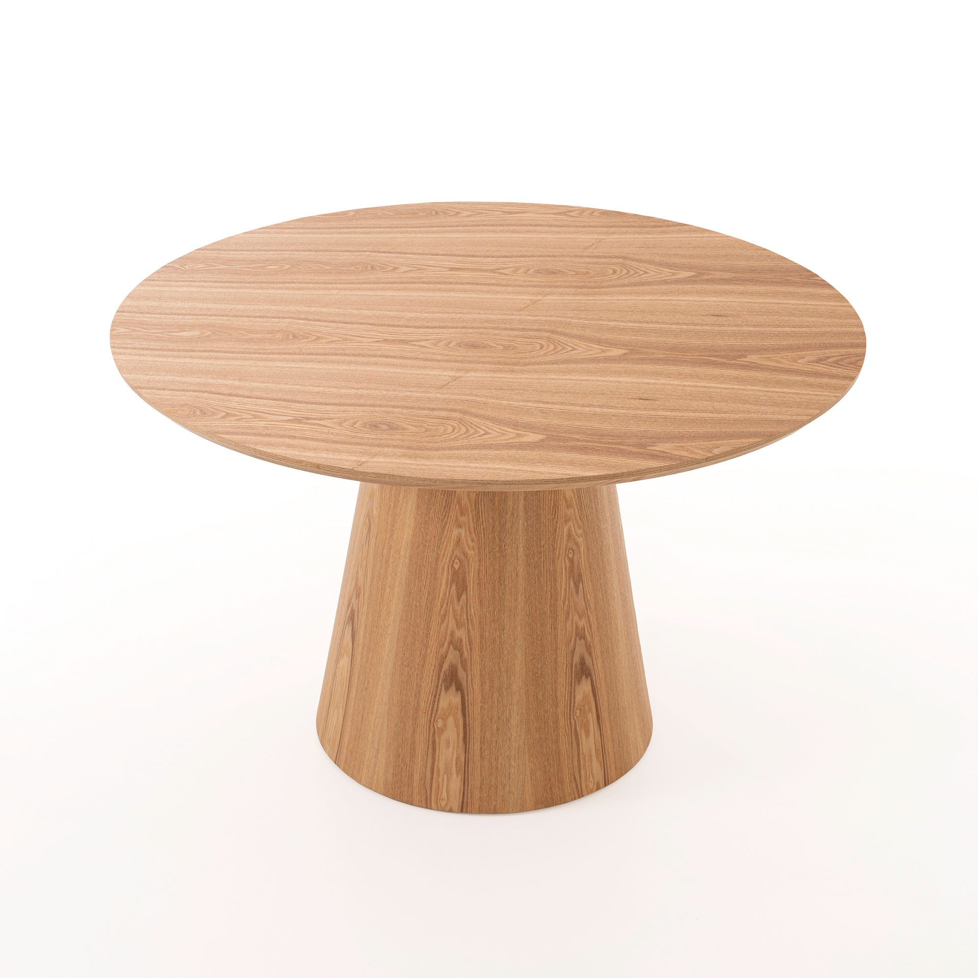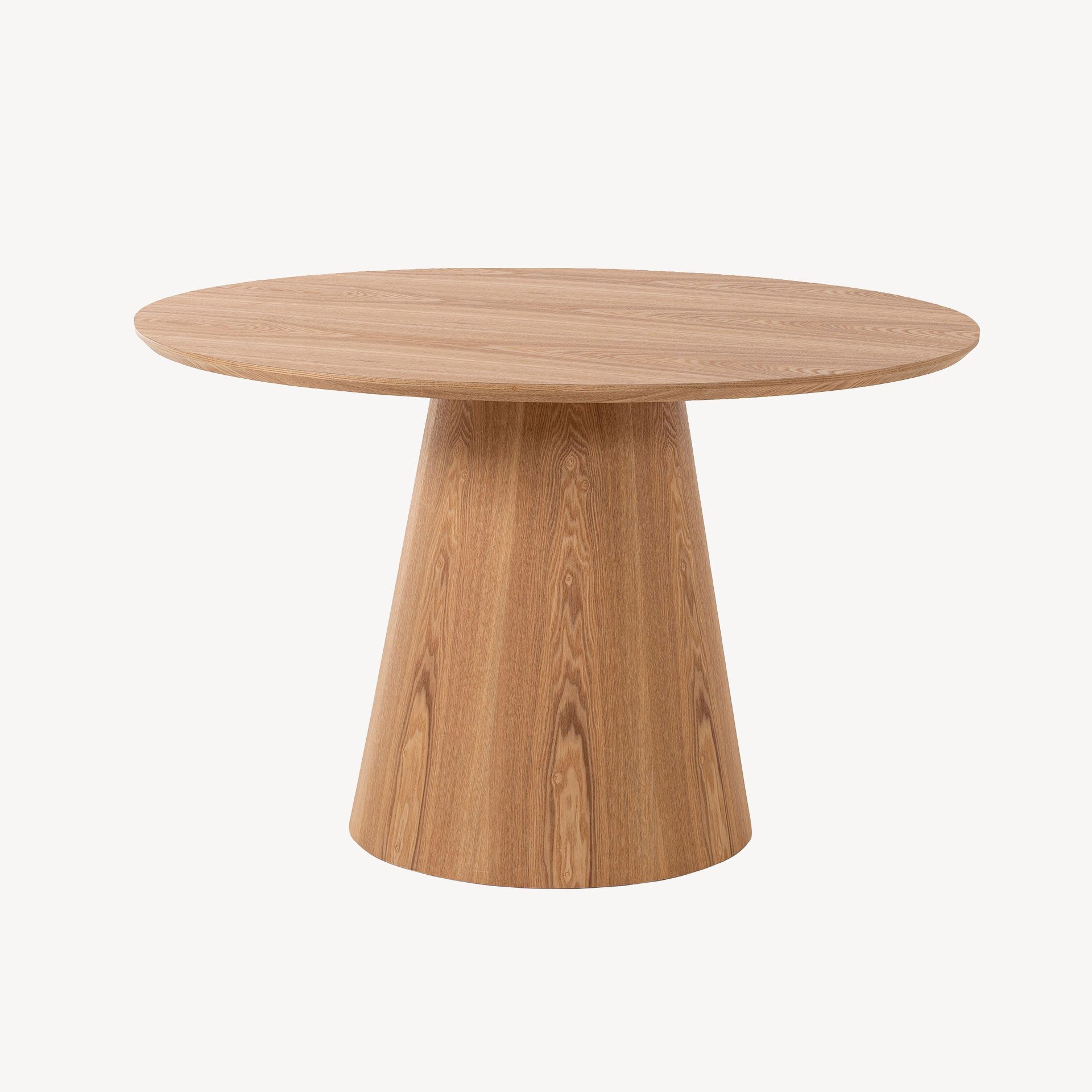 This 120 cm round dining table blends elegance, practicality, and contemporary design. The sophisticated finish gives it a polished look, while the oak veneer adds warmth, stability, and a natural touch that enhances any dining space.