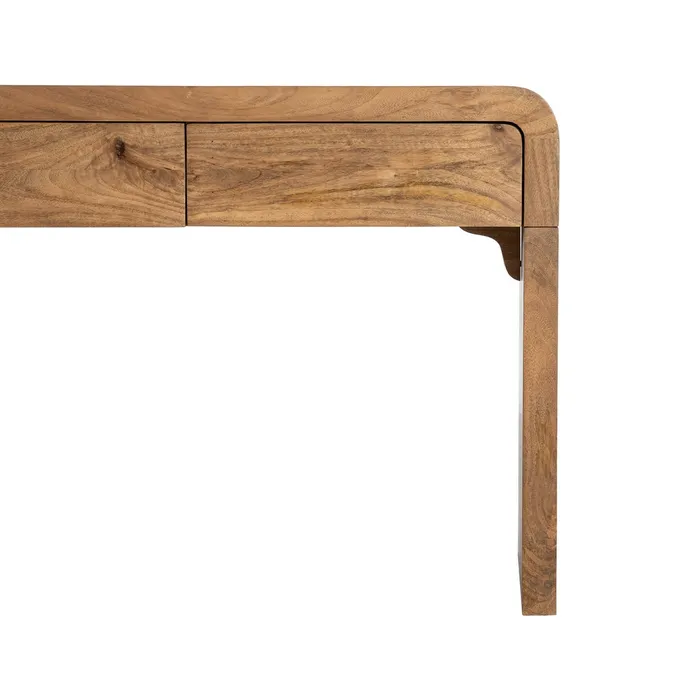 Crafted from solid mango wood, this elegant console features soft rounded edges and a clean, contemporary silhouette. The rich natural grain enhances its warm character, while three discreet drawers provide practical storage. A refined and functional piece, perfect for entryways, hallways, or living spaces seeking timeless style.