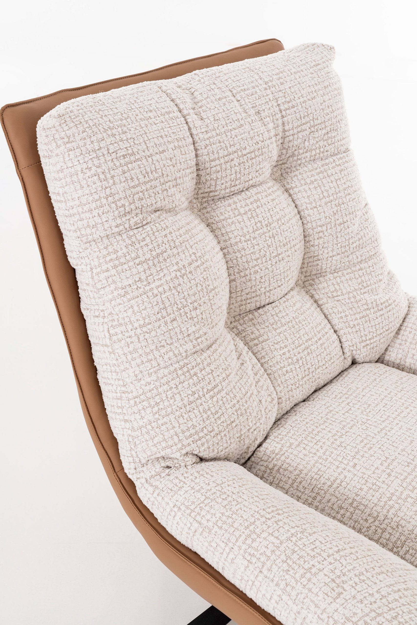 The Ray armchair with 360° swivel function, measuring 92 × 86 × 80 cm, combines modern design, comfort, and maximum durability. Its beige upholstery with an exterior detail in a brown earth tone adds an elegant and versatile style that blends seamlessly into any setting. Specially designed for home use, the fabric is stain-resistant, fire-retardant, and resistant to pet scratches, offering peace of mind and practicality without compromising on aesthetics. The 360-degree swivel mechanism allows for full mobility and comfort in everyday use, while the padded seat and backrest ensure excellent support and relaxation. Perfect for living rooms, bedrooms, or reading areas, the Ray armchair is a functional and decorative choice that brings together style and durability.