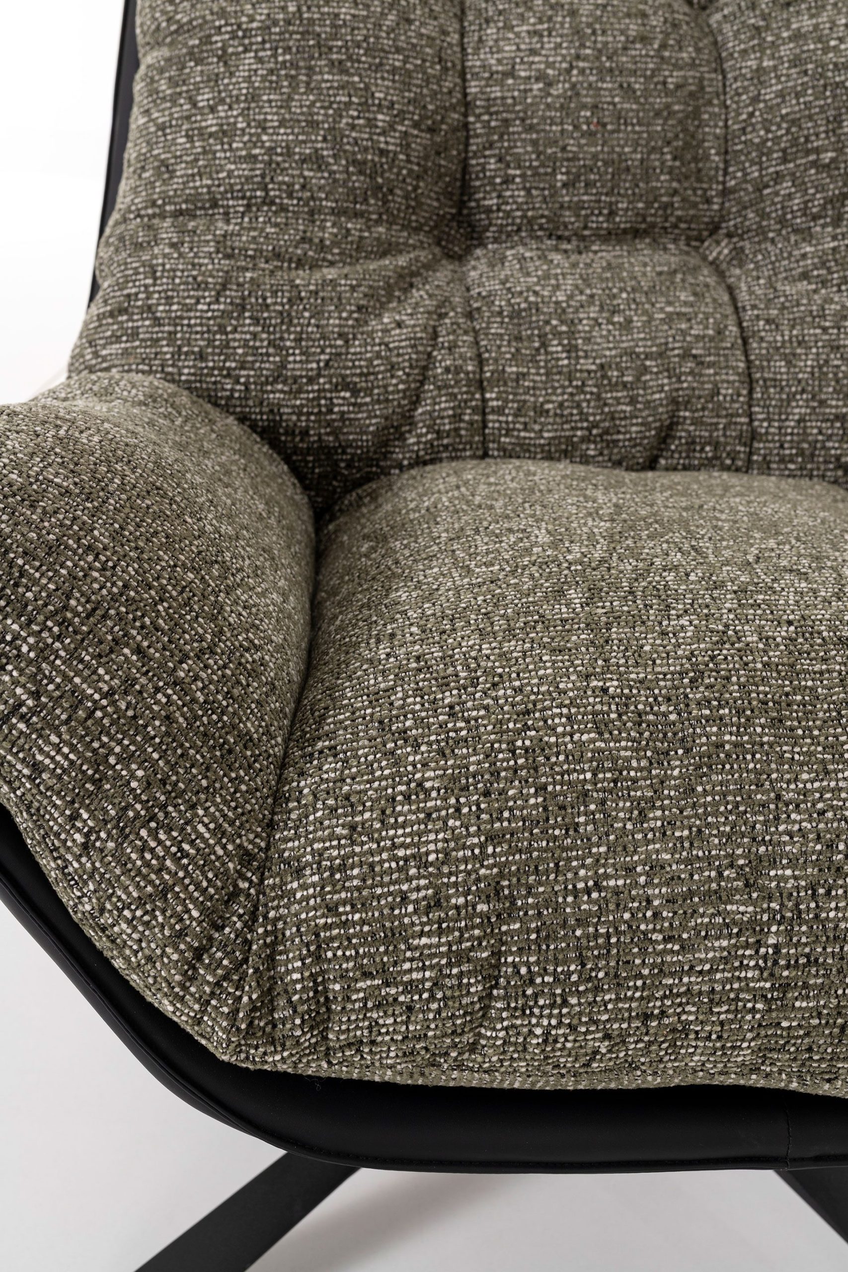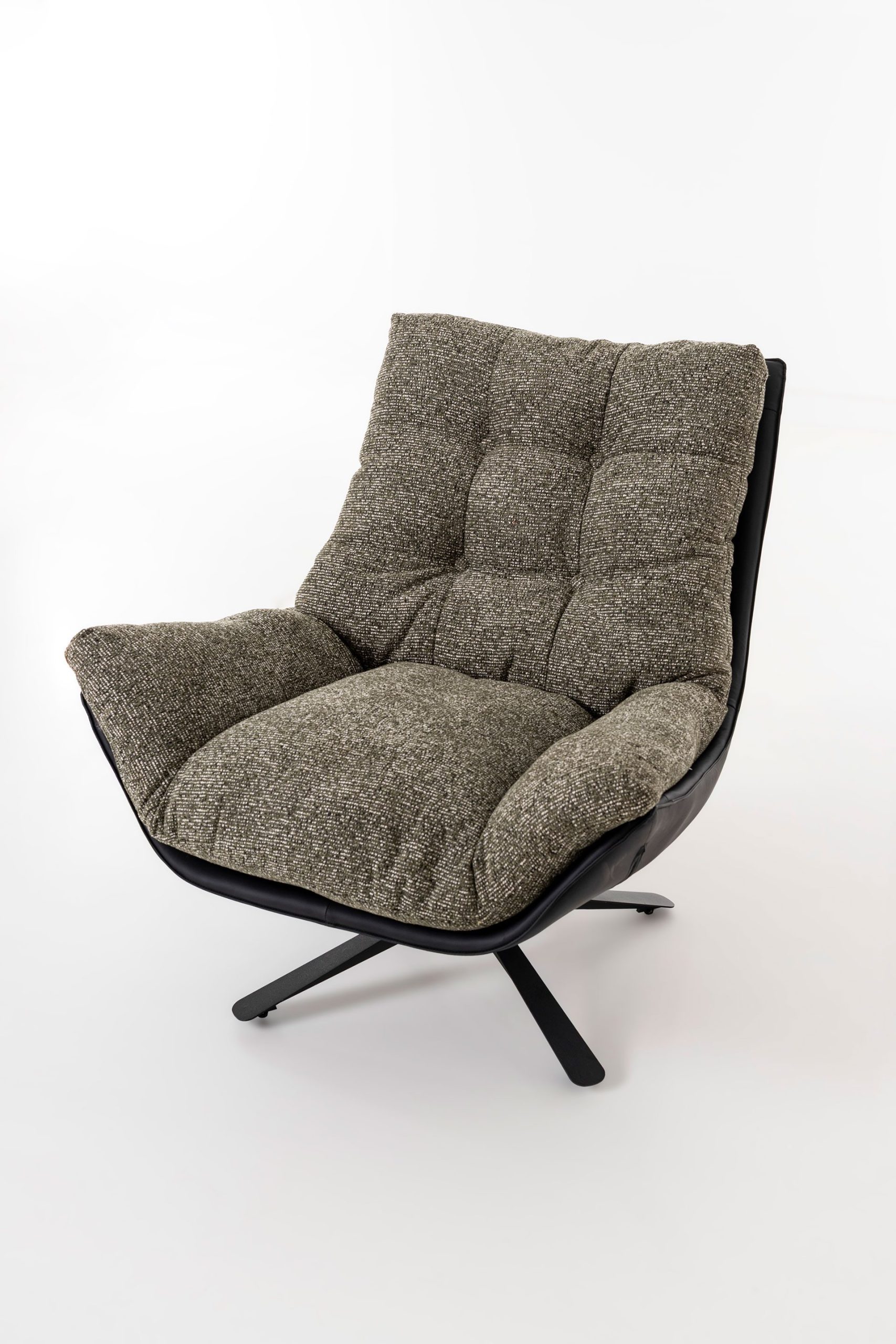 The Ray 360° Swivel Armchair stands out for its elegant design and practical functionality. Upholstered in a speckled olive green fabric with a contrasting black exterior, it creates a refined, contemporary look that suits modern interiors. Its high-performance fabric is stain-resistant, fire-retardant, and highly resistant to pet scratches, ensuring durability and easy maintenance without compromising on style. The full 360-degree swivel allows for effortless movement and everyday versatility, while the generously padded seat and backrest provide ergonomic support and lasting comfort.