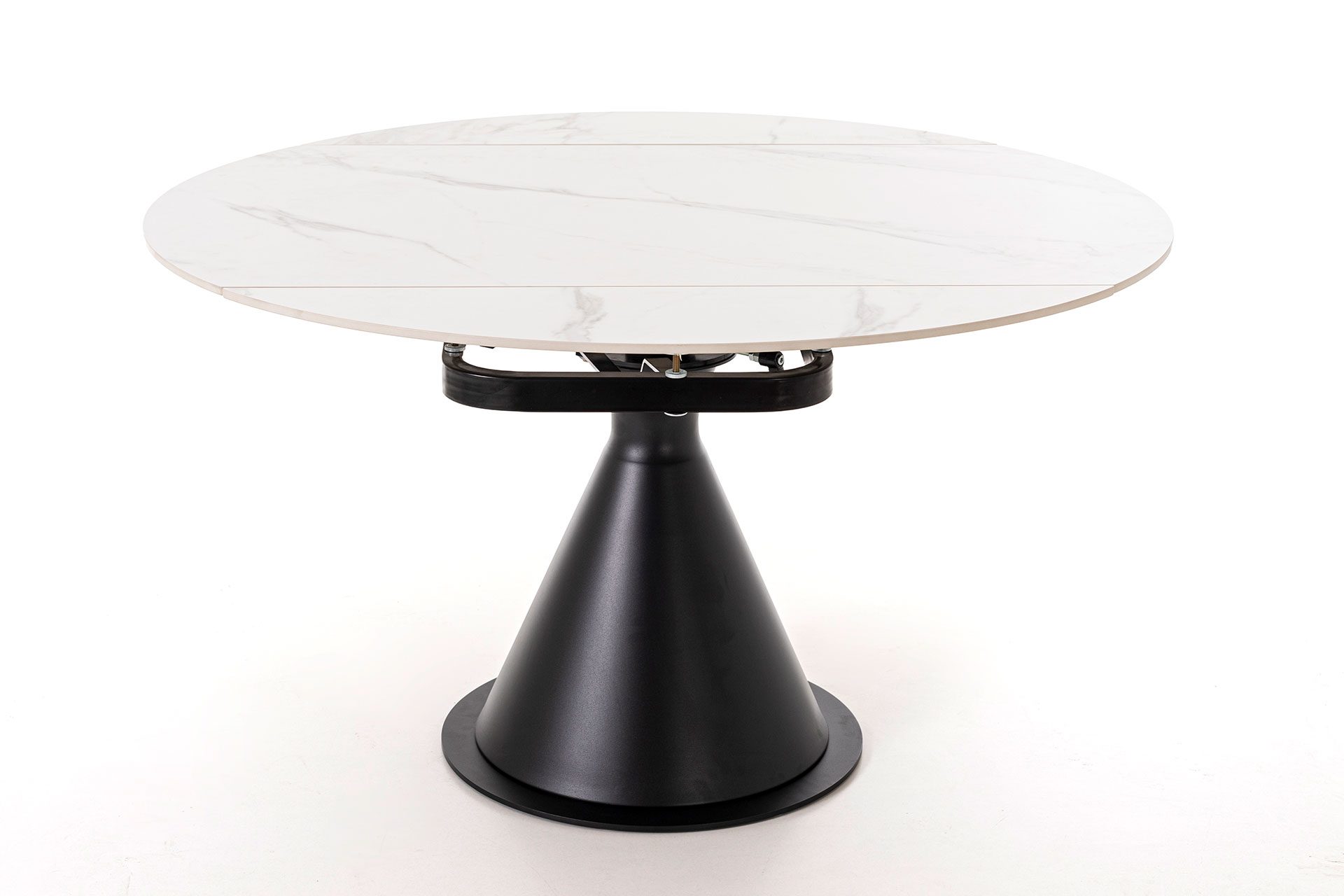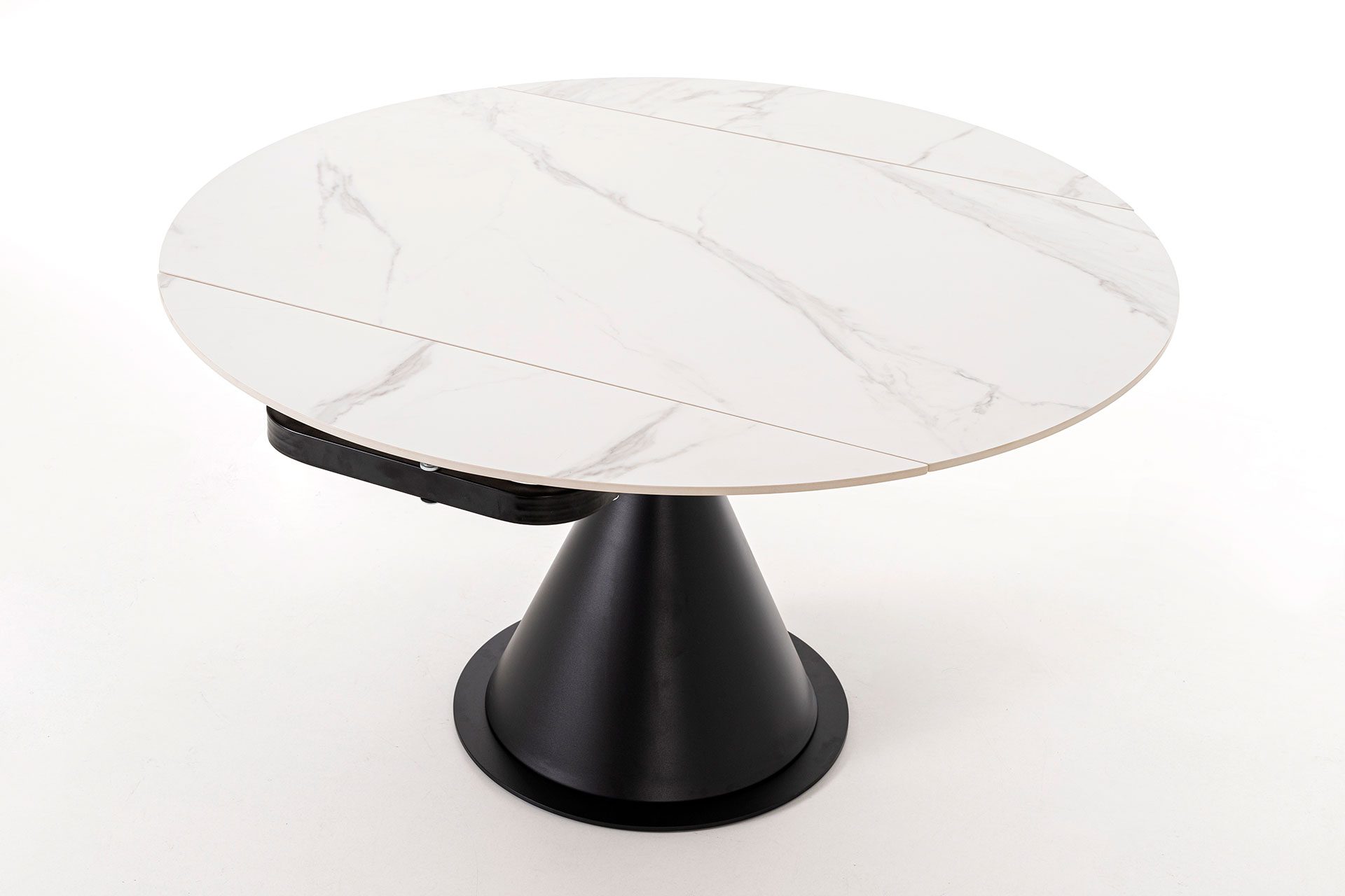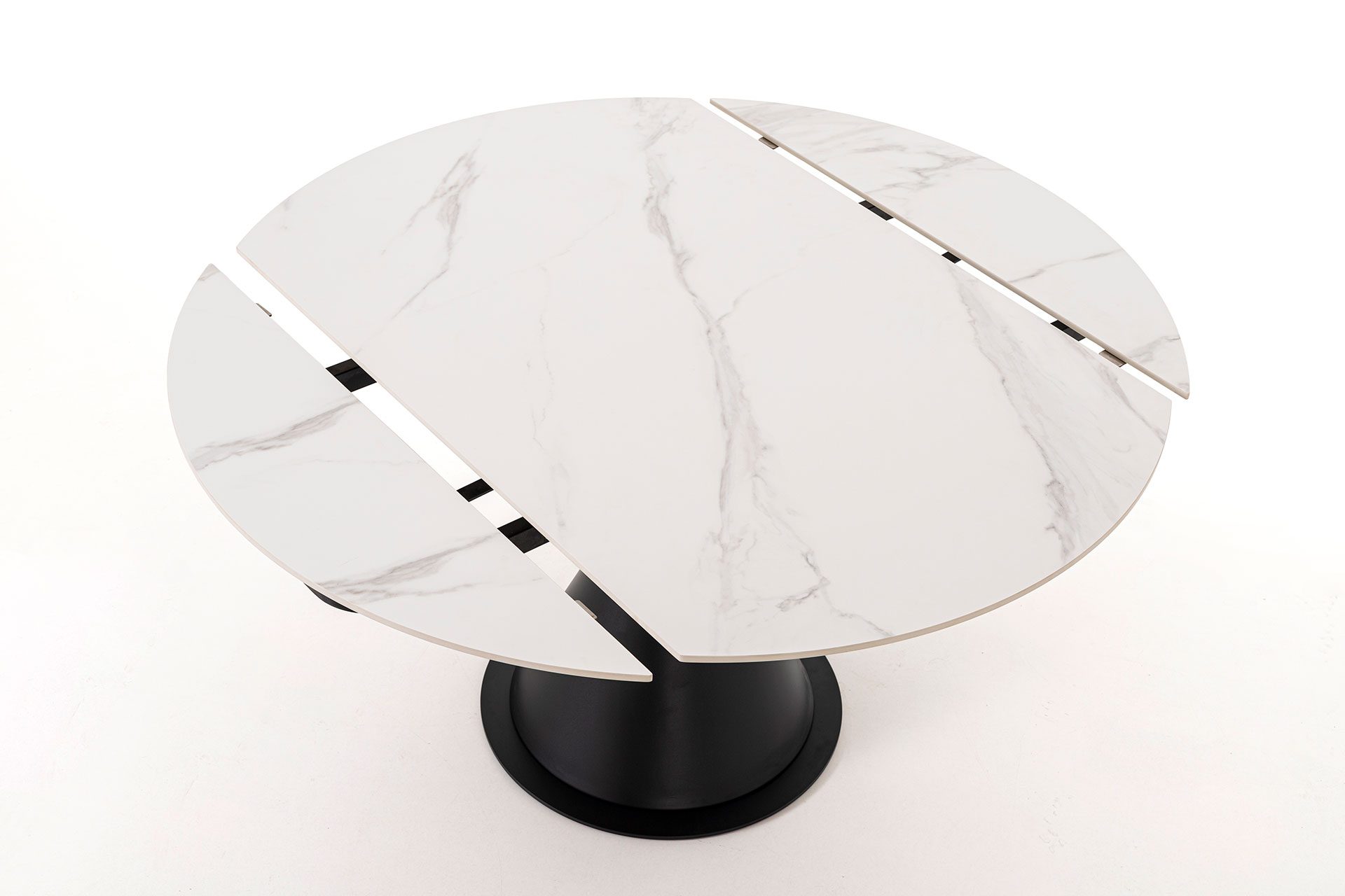 Round Extendable Table – White Porcelain Top & Black Base
