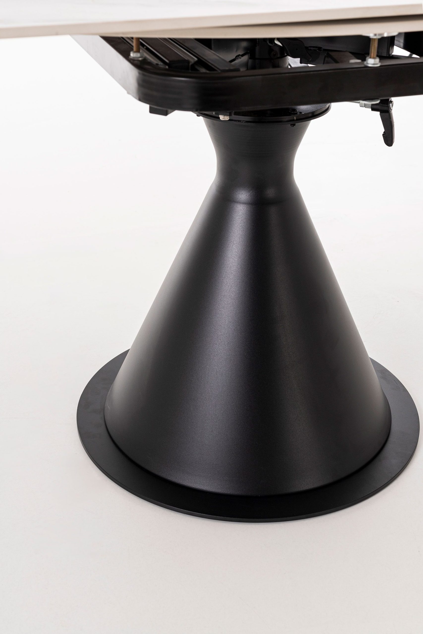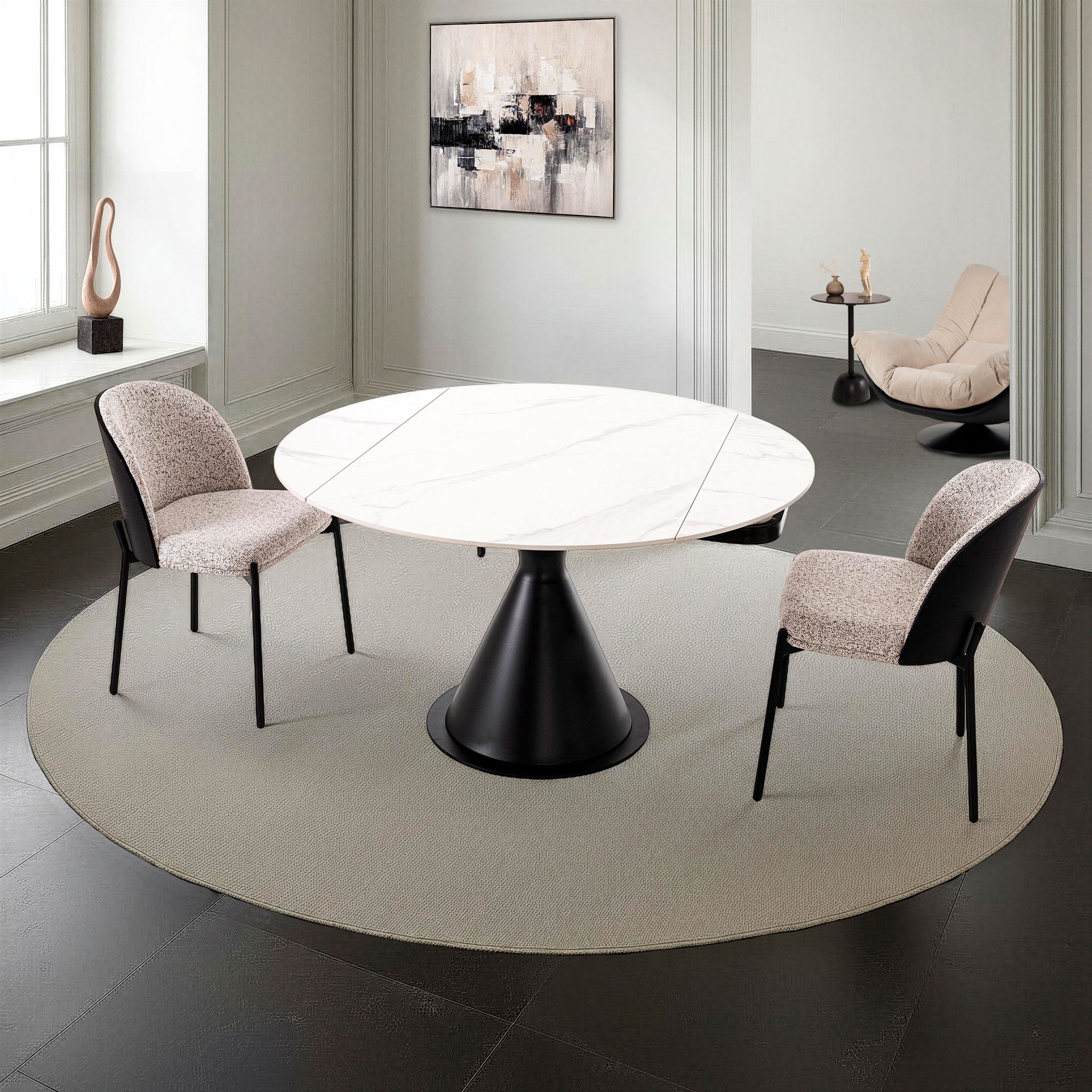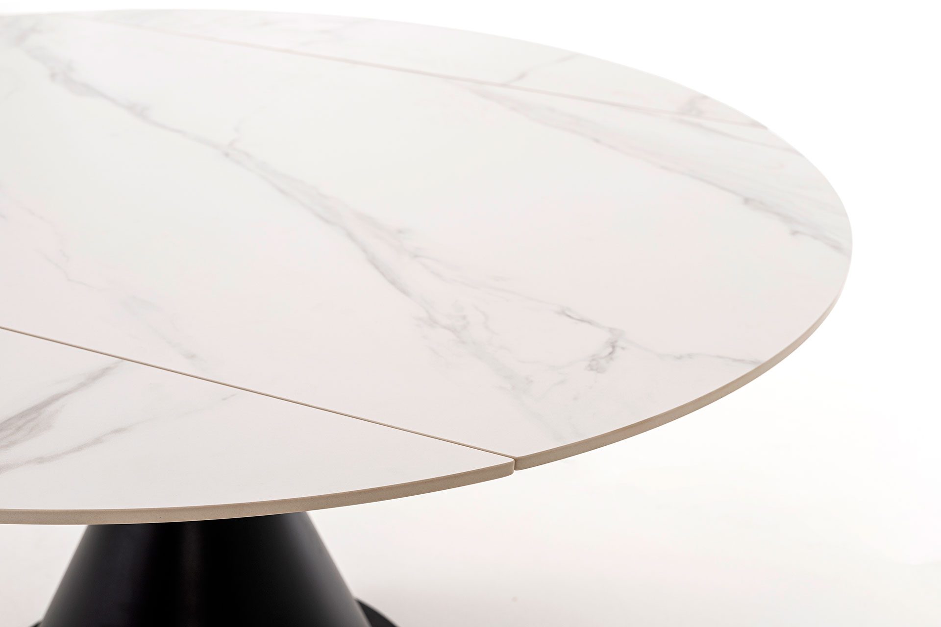 Round Extendable Table – White Porcelain Top & Black Base
